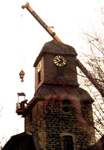 Arbeiten am Kirchturm in Wabern von 1905 - 2001!