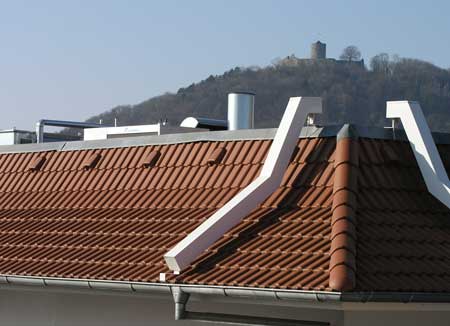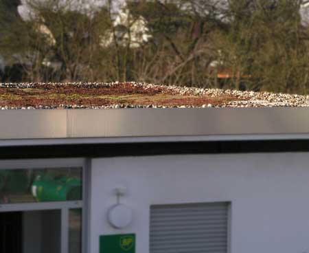 Geschäftshaus in Wabern Ein zusätzlicher Reiz des Flachdachs besteht in den vielfältigen Möglichkeiten, die gewonnene Dachfläche nutzen zu können. Durch fachgerechte Aufbauten können Dachflächen zu Dachterrassen, Verkehrswegen oder zu Grünanlagen umfunktioniert werden. Ob die Grünfläche auf dem Garagendach oder die großflächige Tiefgaragenabdichtung, die Nutzung von Dachflächen schafft neue Lebensräume. |