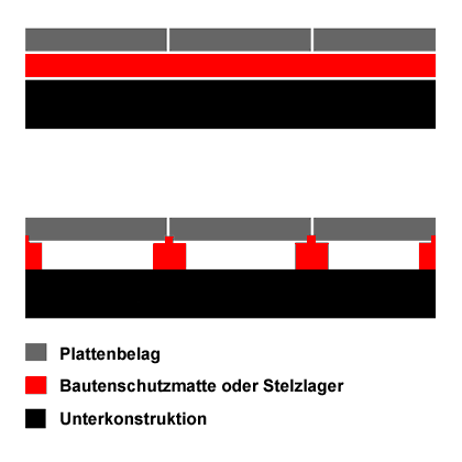 Terrassen und Balkone bieten die Möglichkeit die Natur zu genießen, ohne auf den Komfort der Wohnung zu verzichten. Ein schöne Gestaltung erhöht somit die Wohn- und Lebensqualität. Wir bieten Ihnen zahlreiche Möglichkeiten, Ihre Terrasse oder Ihren Balkon zu gestalten oder ihn neu zum Leben zu erwecken. Eine klassische Möglichkeit ist die Verlegung eines Plattenbelags auf Bautenschutzmatten oder Stelzlager. Selbstverständlich wird die Terrasse oder der Balkon vorher an allen kritischen Stellen neu abgedichtet, damit Sie lange eine ungetrübte Freude an ihm haben. |